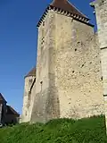 1er plan (de gauche à droite) : tour d'angle, tour rectangulaire, porte et tour des gardes. Arrière plan : grosse tour.