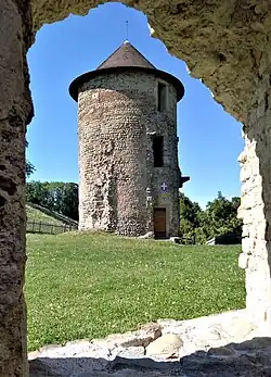 La tour ronde est l'élément le mieux conservé de l'ancien édifice[réf. souhaitée]. Elle semble avoir été construite au cours de la période du XIIIe – XIVe siècles[réf. souhaitée]. Elle a été édifiée en galets et elle possède une voûte au niveau du premier niveau[réf. souhaitée]. Cette tour était reliée à l'autre tour par une [[courtine|courtine[réf. souhaitée]]]. Cette dernière, dont la construction est estimée à la même période, possède un plan original puisqu'elle associe les formes d'un quadrilatère et d'un pentagone[réf. souhaitée]