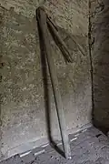Sommet du tronc d'arbre constituant le noyau de l'escalier créé en 1694 pour compléter l'escalier de 1405. Le noyau de l'escalier est constitué d'un seul tronc d'arbre de 10 mètres de hauteur. Les marches sont encastrées tout au long de l'arbre, du sol jusqu'à l'étage des logements du personnel.