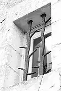 Escalier menant à la geôle médiévale. Celle-ci a été fortifiée par l'Occupant Allemand pour en faire un abri face aux bombes des Alliés.- Coussièges d'une fenêtre exposée au sud. À cette grande pièce aboutit la coursière. Elle s'ouvre sur l'échauguette permettant de surveiller la Loire.