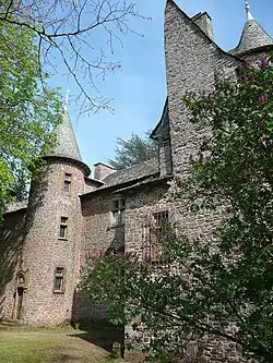 De structure médiévale, avec quatre tours d'angle et une tourelle d'escalier, le château qui mêle influences gothiques, Renaissances française et italienne comprend un bâtiment principal à deux corps et une aile en retour d'équerre au nord-ouest. Le bâtiment principal date de la deuxième moitié du XVe siècle pour la face nord-est, et au début du XVIe siècle pour le reste[1]. On accède y par un double portail, cocher et piétonnier, du XIXe siècle. Les bâtiments sont en pierre de Marcillac comme la cathédrale Notre-Dame de Rodez[5], un grès rose local, avec les couvertures en lauzes de schiste à taille droite ou en lauzes du Cayrol taillées en écailles pour les toitures coniques[4].