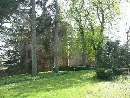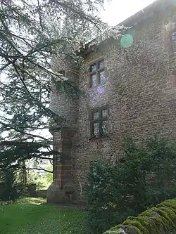 La façade sud-ouest présente le même style que l’extension du XVIe siècle. Elle est percée au niveau du sous-sol de deux jours quadrangulaires semblables à ceux de la façade sud-est. Les fenêtres des niveaux supérieurs sont organisées en deux travées verticales. L’échauguette engagée présente la même structure et le même décor que celle du sud et de l'est[4].
