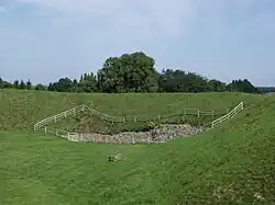 Un chemin de gravier au-dessus de la zone bâtie, permet au visiteur de faire le tour à droite du bâtiment, et d'obtenir une bonne vue sur le château, mais aussi sur la ville de Castle Rising et ses environs.