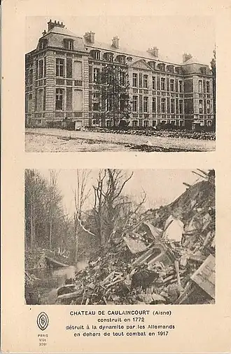 Lors du retrait des troupes allemandes le long de la ligne Hindenburg en mars 1917, le château a été entièrement détruit.