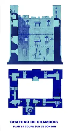 Le donjon de Chambois commandait les défenses du château, mais en restait indépendant, avec des issues masquées. En temps de paix, il renfermait les trésors, les armes, les archives de la famille, mais le seigneur n'y logeait pas : il ne s'y tenait que s'il fallait appeler une garnison dans l'enceinte du château.