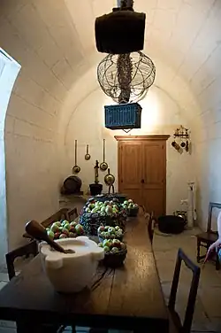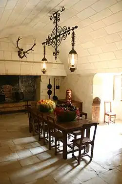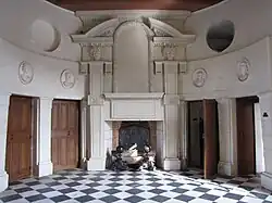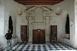 131. Le film de Jacques Vichet avance l'hypothèse que cette pièce est une seconde chapelle. Le fait d'invoquer sa superposition par rapport à celle du château est sous-entendu que cette salle se situe au second étage du logis Renaissance. Détail intéressant, l'historien Casimir Chevalier en 1879, dans son ouvrage Histoire abrégée de Chenonceau, page 264, mentionne : « une chapelle au-dessus de la voûte de la chapelle du château ».