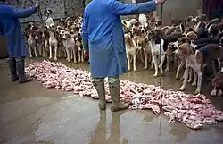Le chenil, tout proche, est occupé par une meute d'une centaine de chiens de races, Français blanc et noir et Anglo-français, destinés à la vénerie. Le repas qui leur est servi chaque jour, la « soupe », donne lieu à un véritable « spectacle », où le piqueur fait une démonstration de son autorité sur les bêtes[30].
