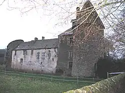 Le corps de bâtiment des communs, à droite en entrant dans la cour, était pourvu d'une grande cuisine, une chapelle, la grange, et les étables. Il y avait quatre tours aux angles, chacune pourvue de deux meurtrières. Le château était entouré d'un fossé large et profond, suivi d'un talus. Cette architecture défensive, hérissée de mâchicoulis, en rendait l'accès difficile. Aujourd'hui, la tour du sud-ouest n'existe plus. Autrefois prolongé à l'ouest par le donjon et une tour, il ne subsiste du château fort initial que trois tours rondes, une massive tour carrée et deux corps de logis bâtis à angle droit. Les fossés, alimentés comme le moulin par la rivière, ont été comblés. La construction la plus ancienne est la tour nord-est. La tour carrée a été réaménagée au XVIIIe siècle.