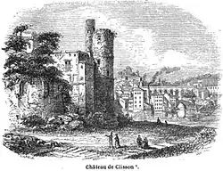 - ↑ Dépliant Le voyage pittoresque à Clisson, Visite du château départemental de Clisson, Chiffoleau, 2008.