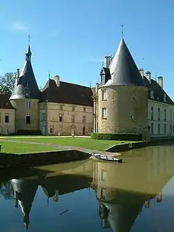Le château de Commarin vu depuis l'entrée principale | ||||
