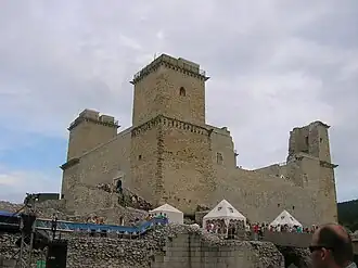 Le château a connu son apogée sous le règne de Louis Ier de Hongrie. Il devait son importance au fait de se trouver près de la route qui menait vers la Pologne (la mère du roi, Élisabeth, était une princesse polonaise). Il a ainsi été modernisé. Entouré de nombreux murs, le château intérieur avait une cour rectangulaire, quatre tours, une à chaque coin.