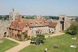 La cour intérieure, ou le château, se trouve de l'autre côté du mur d'enceinte. On peut y accéder en traversant un pont datant du XVe siècle qui a remplacé l'ancien pont-levis qui se trouvait au même endroit. La tour située à l'entrée du château et permettant d'y pénétrer est d'un aspect relativement simple datant du XIIe siècle : le corps de garde, de style beaucoup plus grandiose, est une mode qui commença peu de temps après. Cependant, Thomas Howard, 2e duc de Norfolk, fit remodeler cette entrée au XVIe siècle en y ajoutant son blason et des décorations supplémentaires sur les murs. La cour intérieure est située autour d'une courtine faite de pierre de silex local et de pierre formée par concrétion. Elle fait 10,5 m de hauteur et 2,3 m d'épaisseur et est protégée par treize tours murales carrées aux fonds ouverts, chacune d'entre elles mesurant environ 14,3 m de haut et possédant des coins en grès. Un chemin de ronde permet de parcourir le sommet des tours et du mur.
