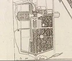 Détail du plan Trudaine, avec partie d'aménagement du grand parterre et des canaux, vers 1740.