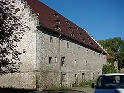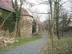 Cette deuxième enceinte a été édifiée entre 1445 et 1464, sous les règnes des archevêques Gunther II et Frédéric III. Gunther II venait pour cela de vendre les châteaux de Lauchstädt, de Liebenau et de Schkopau. Il n'y a aucune trace archéologique d'une construction ayant précédé ce châtelet, mais on suppose qu'un tel château a dû posséder un avant-poste ou peut-être un magasin. Les remparts et leurs tours de flanquement, les douves et la distribution des rues reflètent une conception cohérente. Seul le rempart oriental est dégagé de maisons. La grange aux dîmes a été construite sous le règne de l'archevêque Johannes.