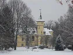 Ce château de 1 245 m2 a été construit en 1897-1898 par la famille von Götz d'après une image représentant un château de conte de fée. Il sert de demeure à l'importante exploitation agricole de la famille et remplace l'ancien manoir détruit en 1902. Les écuries et la remise sont construites en 1904. La tour ornée d'une girouette permet d'apercevoir les terres environnantes. Un petit manoir de 465 m2 est construit pour l'un des fils de la famille en 1909.