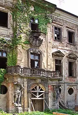Lors du siège du complexe du château occupé par les Suédois et les troupes impériales pendant la guerre de Trente Ans, le château a été incendié en 1646, le rendant ainsi inhabitable pendant une longue période. Ce n'est qu'entre 1690 et 1696 que le palais a été reconstruit dans le style baroque dans sa forme actuelle sous Ferdinand Guillaume de Lobkowicz, mais il a de nouveau brûlé en 1713 sous Ulrich de Lobkowicz. Après 1722, le château a été utilisé comme pavillon de chasse.