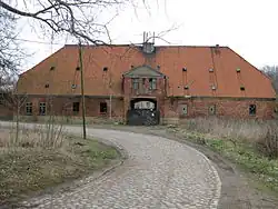 Le château se trouve non loin du lac de Dassow; la cour avec les bâtiments agricoles et les abords du château avec le parc sont entourés d'eau, formant ainsi un quadrilatère. Les communs s'ouvrent par une cour avec une Torhaus, c'est-à-dire une maison d'accès avec portail surmonté d'une tourelle, typique de la région. Les constructions ont pris pour modèle celles du domaine voisin de Bothmer, malheureusement elles commencent à tomber en ruines, et la tourelle s'est effondrée.