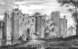 Le château du XVe siècle est de forme rectangulaire, de conception similaire au château de Farleigh Hungerford dans le Somerset ou au château de Baconsthorpe dans le Norfolk[33]. Bien qu'incomplets, les éléments subsistants et les fondations montrent qu'il a été conçu avec une tour carrée à chaque coin, avec des tours latérales moins importantes aux bords nord-est, sud-est et sud-ouest, et une grande guérite au nord-est[34]. Une rangée intérieure de bâtiments, de 17 pieds de profondeur, courait autour de l'intérieur du mur-rideau, légèrement en retrait du mur lui-même et formant une cour centrale[35].