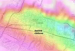 - Schéma indiquant l'emplacement du château détruit avec le cadastre actuel.