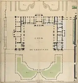 - Plan du Château-Vieux et de l'aile des marronniers sur la droite. ADY.