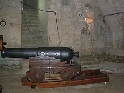 - Le grand arsenal, caractérisé par quatre canonnières « à la surface de l'eau », deux faces au large, deux à l'intérieur du port, desservies par quatre obusiers napolitains à canon lisse de 1 400 kg de la première moitié du XIXe siècle.