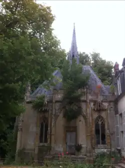 La chapelle, également construite au XIXe siècle, souffre d'une mauvaise conception : les pierres de l'autel de l'église des Grands-Carmes de Metz, à l'origine sélectionnées pour des décorations intérieures, sont exposées aux intempéries et la façade est qui donne sur la terrasse a été construite sans contrefort, probablement afin d'obtenir un ensemble plus harmonieux. Le décalage vers l'extérieur de cette façade a été interrompu en 2016 grâce à des étais dont la pose a été rendue possible par les VMF, la Fondation pour la Sauvegarde de l'Art Français[24] et une campagne de financement participatif[25], mais le bâtiment est toujours d'une fragilité extrême. En particulier, la charpente et la voûte sont en danger, ainsi que la façade ouest sur laquelle pousse une abondante végétation laissée en place car son retrait comporte des risques difficiles à évaluer.