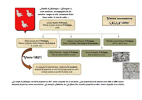 À la mort de Louis-François d’Arlanges en 1827, Marie-Louise-Zoé d’Arlanges et son époux Charles-André-Auguste de la Voyrie recueillirent l’héritage de leurs parents. La même année, ils vendirent la propriété, comprenant le château et ses terres, au marquis de Saint-Gemme[15].
