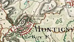 Dessin du XIXe siècle du château de Montigny-le-Roi par François Alexandre Pernot. | ||||