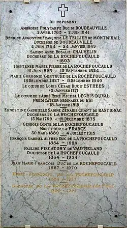 - Edmée de Fels, duchesse de La Rochefoucauld, ( - ) épouse de Jean François Marie, 13e duc de La Rochefoucauld, 8e duc de Liancourt et d'Anville, ( - ), neveu - et fils adoptif - de François XVI Alfred Gaston, 11e duc de La Rochefoucauld ;