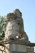 Enceinte surmontées de statues (lion appuyé sur un écu surmonté d'une couronne ou vases remplis de fleurs et de fruits)