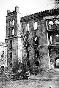 "Le Palais des cavaliers" a aussi été victime de dommages collatéraux en 1945, toutefois les dégâts restent limités, de sorte qu'il put être reconstruit par la suite. Le portail principal et sa clôture, qui initialement se tenaient devant le château, ont été récupérés par le zoo de Chorzów pour son propre usage. En 2006, pour le centenaire de l'existence du "Palais des cavaliers", il fut demandé au zoo de restituer le portail et sa clôture, ce qui n'aboutira pas.
