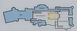 - ↑ « Ursprünglich sollte das Schloss mit Gäste- und Dienstbotenzimmer über 200 Räume auf einer Fläche von 6.000 m2 beherbergen. Fertiggestellt und ausgestattet wurden aber lediglich an die 15 Zimmer und Säle. » sur le site Châteaux en Bavière.