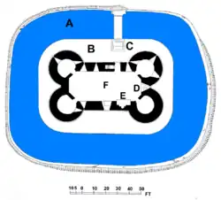 Sur le plan d'origine, on trouvait plusieurs fenêtres et cheminées aux étages supérieurs mais le hall en revanche était relativement sombre et les escaliers étroits et donc peu pratiques. Le donjon avait une entrée modeste que l'on pouvait rejoindre en passant sur un pont-levis suspendu au-dessus des douves situées aux alentours du château et qui, à l'origine, en atteignaient même la base. Un mur d'enceinte, haut de 3,6 m, tout simple, et dont la valeur défensive était minime, entourait ces douves qui elles, au contraire, étaient étendues, profondes de 3 m et difficiles à drainer si telle avait été la volonté d'éventuels attaquants.