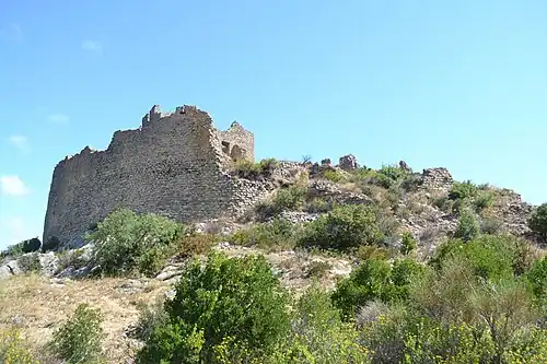 Le château de Padern surplombe le village du même nom, sur la route départementale 14 qui relie Cucugnan à Tuchan, dans le département français de l'Aude, en région Occitanie.