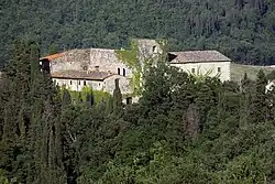 Situé sur un éperon entouré de cyprès, il occupe une position dominante sur la vallée de la rivière Pesa.