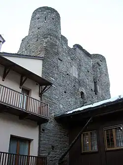 Il est cité pour la première fois dans un hommage en latin prêté en 1337 par Alexandre et Jean, seigneurs de Nus : Confessi fuerunt... tenere ad feudom... Domun merlatam sitam in burgo de Nus in introitu villae veniendo de Augusta[1].