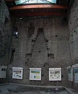 Le bâtiment original était composé par quatre étages, dont il ne reste aujourd'hui que deux tours angulaires et trois murs.