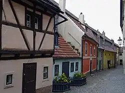 - ↑ Léon et Xavier de Costner précisent également que les maisons sont reconstruites en dur, ou au moins enduites, à l'époque de Marie-Thérèse, dans Léon de Costner, Xavier de Costner, 15 promenades dans Prague, Casterman, coll. « Découvrir l'architecture des villes », 1992.