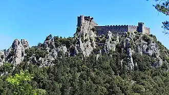 Il fait alors partie des « Cinq fils de Carcassonne » avec les châteaux de Quéribus, Peyrepertuse, Termes et Aguilar, tous situés en haut de pitons rocheux « imprenables ».