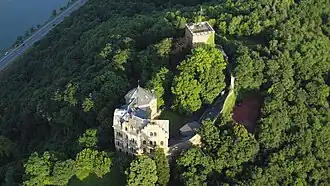 Le château était alors reconstruit sur les anciennes fondations, entre les années 1832 et 1836. Les restes des murs, très vétustes, ont dû été dégagés pour laisser place à une nouvelle construction. Le maitre d’alors des lieux ne voulait pas refaire un château fort, mais plutôt une bâtisse agréable dans un style romantique pour y loger, adossée à l’ancienne chapelle du portail qu’il voulait initialement conserver. Cette chapelle, par son dessin octogonal, évoqua la cathédrale carolingien d'Aix-la-Chapelle[5]. Après avoir démoli l’ancien bâtiment adjacent à cette chapelle, des fissures apparurent sur cette dernière, et il fallut la reconstruire également. Ce fut fait par Johann Claudius de Lassaulx en respectant l’adroit et la forme de la chapelle originale du XIIe siècle. La chapelle fut alors peinte par Eduard von Steinle pendant les années 1838 à 1840.