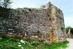 Le château médiéval actuel est construit sur les vestiges des deux premières phases de l'acropole antique et suit le tracé des anciennes fortifications, dont il intègre les fondations[21],[22]. Le mur d'enceinte extérieur médiéval est en grande partie construit sur les traces des murs antiques, les différents styles de maçonnerie permettant de distinguer clairement les deux structures l'une de l'autre. À ces murs sont ajoutés des murs internes de forme transversale, renforcés par la présence de tours, divisant l'espace clos en trois cours de châteaux forts. La cour de château fort extérieure contient également un monastère, dont il ne subsiste que l'église de l'Assomption, datant du XVe siècle. L'intérieur du château est aujourd'hui en grande partie en état de ruines et envahi par la végétation.[23] La datation de la reconstruction des fortifications entreprise par les Byzantins est incertaine, pouvant remonter de la réoccupation du site au cours du IXe siècle jusqu'aux XIIIe et XIVe siècles[24].