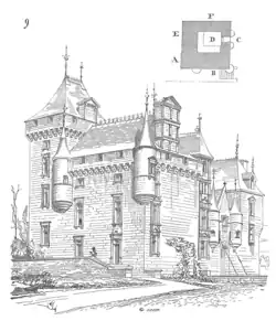 Une cheminée Renaissance du deuxième étage porte une inscription latine peinte relatant le passage d'Henri IV. Des quatre corps de bâtiments construits en quadrilatère avec une cour intérieure construits dès l'origine de l'édifice, il ne reste aujourd'hui qu'un pont-levis enjambant les fossés et donnant accès à une porte. Cette dernière est flanquée de deux tourelles qui ouvrait sur la cour intérieure. Le donjon carré à quatre étages était situé à l'angle opposé, au nord.