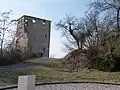 - On peut apercevoir les portes d'accès au chemin de ronde au deuxième étage de la tour. Ce chemin de ronde devait épouser le relief et constituer, à l'instar des bâties alentour (bâtie des Allymes, bâtie de Luisandre), un quadrilatère ceinturant une haute-cour.