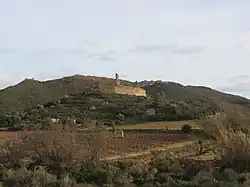 - Vestige de l'enceinte surplombant la route.
