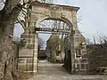 Le bâtiment ouest réside en une grosse tour carrée à trois étages carrés, garnie à l’angle sud-ouest d'une tourelle et accoté au nord à un bâtiment d’un étage et demi daté de 1770. À l'ouest, un pigeonnier circulaire a été bâti sur le mur de clôture du parc[réf. souhaitée].