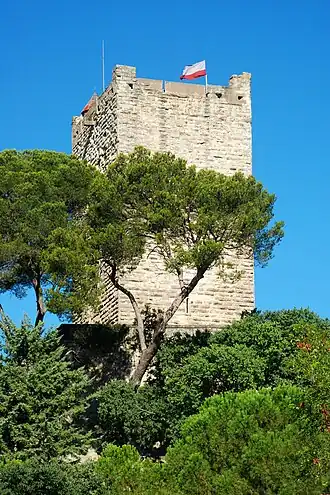 Le château comprenait deux tours : la tour Bermond au sud et la tour de Montlaur au nord, datant respectivement du début et de la fin du XIIIe siècle[6]. Seule la tour Bermond est intacte, la tour de Montlaur ayant été partiellement détruite lors du siège de la ville en 1573 puis au XIXe siècle[6],[1].