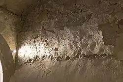 En 1689, la chapelle est transférée à l'étage. La partie basse de l'édifice est transformée en deux cachots séparé par un mur de refend, toujours visible, qui sépare le chœur de l'abside sans communication possible. Une porte située à la place de la baie ouest permet d'accéder au cachot situé dans le chœur. Le mur de refend comporte des graffitis laissés par les prisonniers protestants et militaires[4]. Parmi les bâtons de comptage, on peut distinguer le nom du village de Cardet et celui de la galère La Hardie où furent envoyés des camisards à la fin du XVIIe siècle[2].