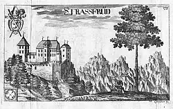 Le château de Straßfried, Topographia Archiducatus Carinthiae antiquae & modernae completa, Janez Vajkard Valvasor, 1688.