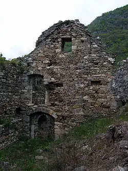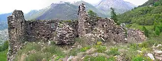 La muraille d'enceinte qui l'entourait, aujourd'hui en partie écroulée et étouffée par la végétation, avait une forme irrégulière afin de mieux s'adapter aux aspérités du terrain. Sur le côté nord, se dressait l'habitation principale, avec un mur de 80 centimètres d'épaisseur[2].
