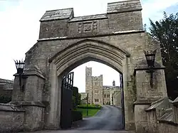 Le bâtiment est construit en moellons de grès, avec des toits en ardoise. Il se compose principalement de deux rangées sur les côtés nord et ouest d'une cour. Son style architectural est un mélange de néo-élisabéthain et de néo-gothique. On y accède par un pont en arc traversant les douves [4]. Ses fenêtres sont soit à meneaux, soit à meneaux et impostes, et il y a deux tours, dont l'une a deux étages, l'autre trois. De nombreux parapets sont crénelés. Autour du bâtiment se trouvent des terrasses avec des bastions [4].